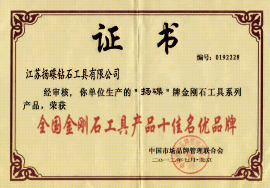 多年來,企業通過ISO9001國際質量體系認證,被中國中輕產品質保中心授予“全國金剛石制造行業質量放心滿意單位”,獲得江蘇省高新技術企業稱號,榮獲江蘇省小巨人稱號,變速箱PCD復合鉆鉸刀獲省高新技術產品等等。